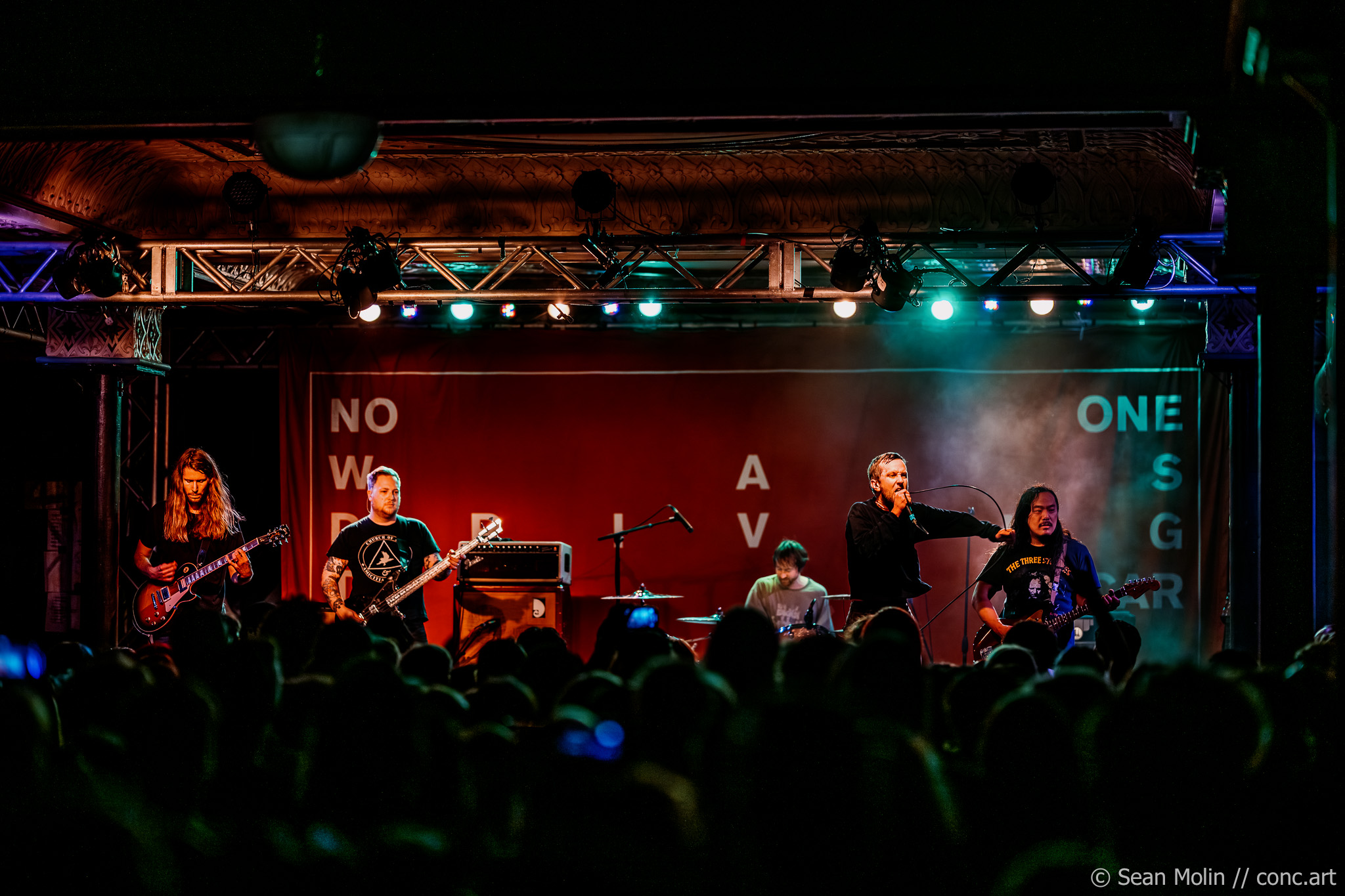 La Dispute’s Saturday night performance carried a weight that was impossible to ignore, setting the tone early with the raw urgency of “I Shaved My Head,” a standout single from their recently released album No One Was Driving the Car. Jordan Dreyer’s restless movements across the stage, paired with his spoken-word delivery, gave the set an intensity that commanded attention from the crowd. The band maintained a careful balance between clarity and heaviness, allowing every lyric to cut through while the instrumentation delivered with unrelenting power.